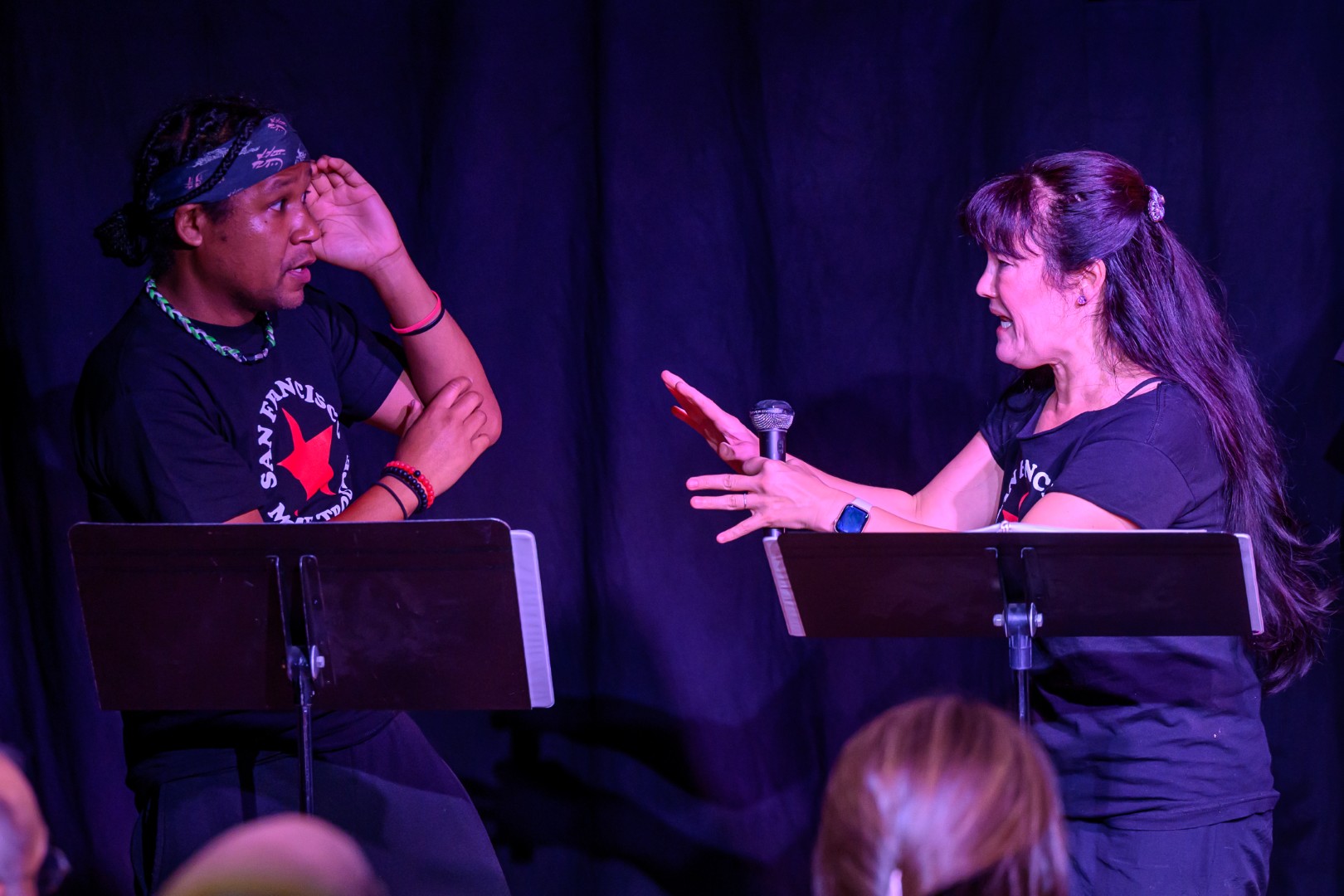 The San Francisco Mime Troupe's Youth Theater Project (YTP) team is dedicated to empowering young people through theater. Led by a diverse group of theater practitioners and social justice artists, they mentor young apprentices, guiding them in expressing their thoughts and experiences creatively. These mentors, who come from various backgrounds within the Bay Area, share a passion for using theater as a tool for artistic expression, social awareness, and personal growth.